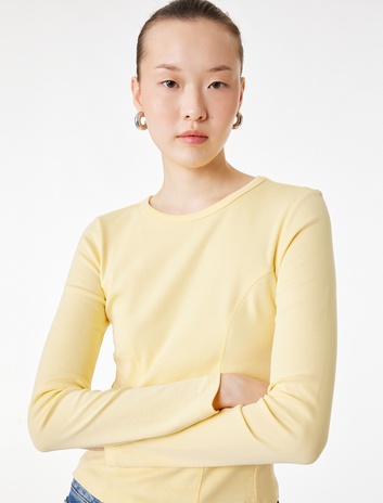 { "item_name": "Pamuklu Slim Fit Uzun Kollu Dikiş Detaylı Bisiklet Yaka Tişört", "item_id": "8684848046745", "price": 599.99 , "item_brand": "Koton", "item_category":"CITY FASHION", "item_category2":"CITY FASHION", "item_category3":"WOMEN", "item_category4":"JERSEY", "item_category5":"TSHIRT LS", "item_season":"2026 SPRING/SUMMER", "item_variant": "SARI|XS", "item_list_name":"Kadın - Butter Yellow - Dinamik", "item_list_id":"4524", "index": 361 , "quantity":1, "base_code": "6SAK50008PK" }