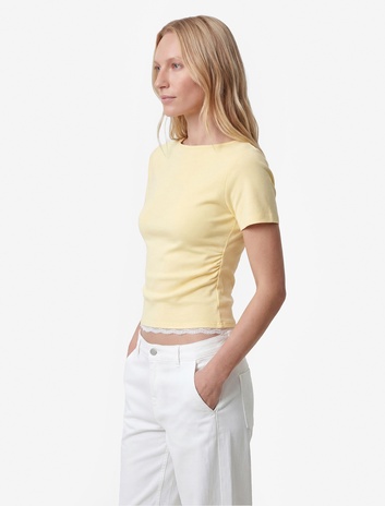 { "id": "8684848991236", "name": "Slim Fit Kısa Kollu Bisiklet Yaka Dantelli Pamuklu Tişört", "taxonomy":["OLE","OLE","TEENAGE","JERSEY","TSHIRT SS"], "currency": "TRY", "unit_price": 599.99 , "unit_sale_price": 599.99 , "url": "https://www.koton.com/slim-fit-kisa-kollu-bisiklet-yaka-dantelli-pamuklu-tisort-sari-4158425-1/", "stock": 76, "color": "SARI", "size": "M", "product_image_url": "https://ktnimg2.mncdn.com/products/2026/03/16/3212875/c004875d-345b-4e75-a5a9-d922ce631d13_size870x1142.jpg" }