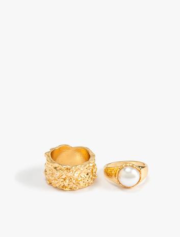 Kadın Yüzük Seti 2'li Dokulu Kalın İnci Detaylı