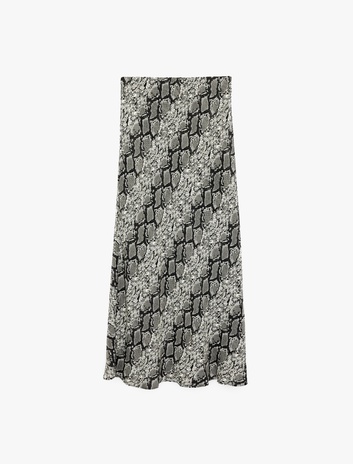 Kloş Kesim Yılan Desenli Midi Saten Etek