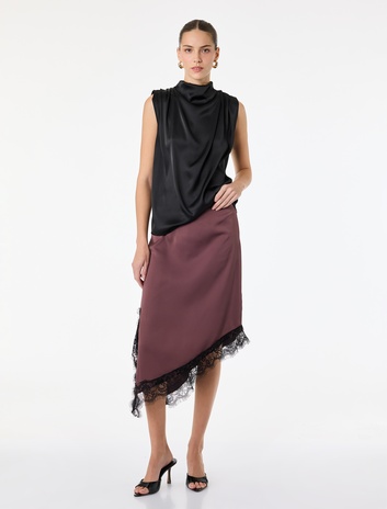 Asimetrik Slim Fit Dantel Detaylı Saten Midi Etek