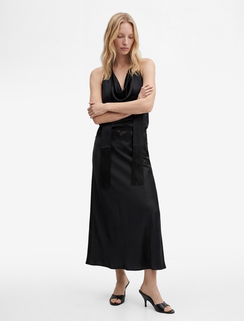 Beli Bağcıklı Kloş Uzun Saten Etek Sepete Ekle