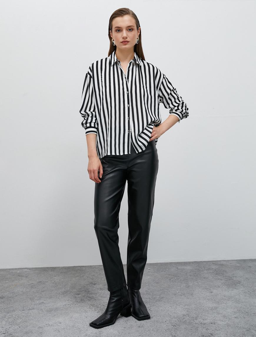 Sezonun trend gömlek tasarımlarına Koton ile göz kırpın. Çizgili, uzun kollu saten gömlek ofiste pazartesilerinize heyecan katacak.