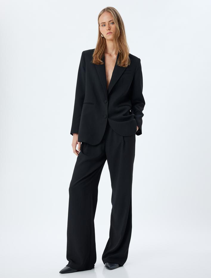 Bol Paça Kumaş Pantolon Yüksek Bel