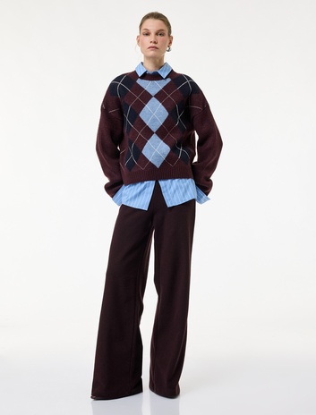 Koton X Sibil Çetinkaya - Düz Bol Paça Triko Pantolon