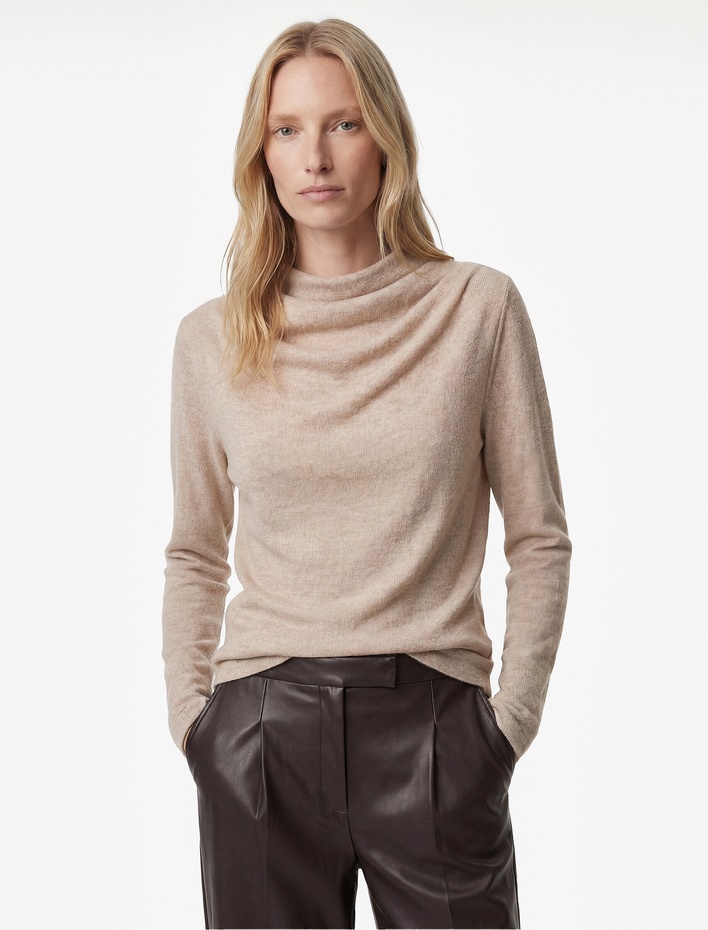 Drape Detaylı Uzun Kollu Geniş Dik Yaka Tişört Sepete Ekle