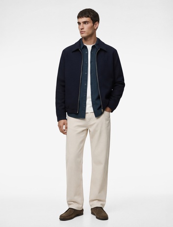 Regular Fit Uzun Kollu Cepli Gömlek Yaka Fermuarlı Spor Ceket