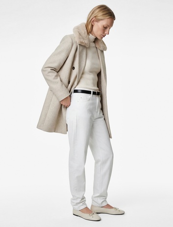 Çıkarılabilir Suni Kürk Yaka Kaşe Kaban Kruvaze Uzun Kollu Cepli