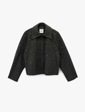 Koton X Melis Ağazat - Uzun Kollu Cepli Düğmeli Taşlı Kaşe Ceket Sepete Ekle