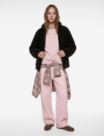 Fermuarlı Dik Yaka Uzun Kollu Peluş Ceket Sepete Ekle