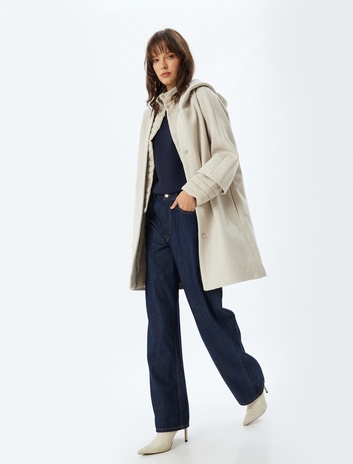 Kapüşonlu Kaşe Kaban Ekstra Kapitone İçlik Detaylı Düğmeli Cepli Sepete Ekle