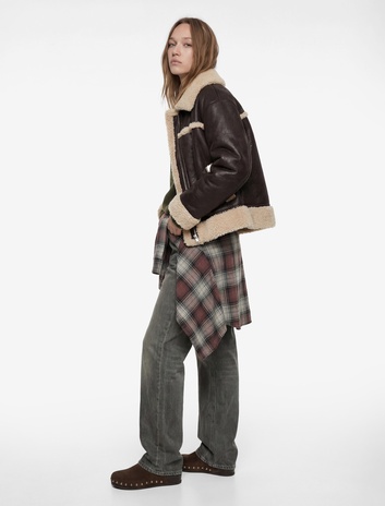 Suni Deri Kısa Oversize Biker Ceket Suni Kürklü Peluş Astarlı Cepli Sepete Ekle