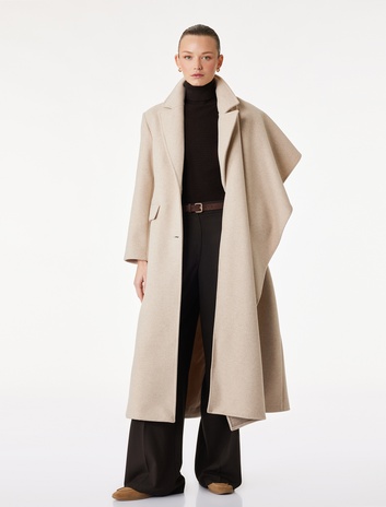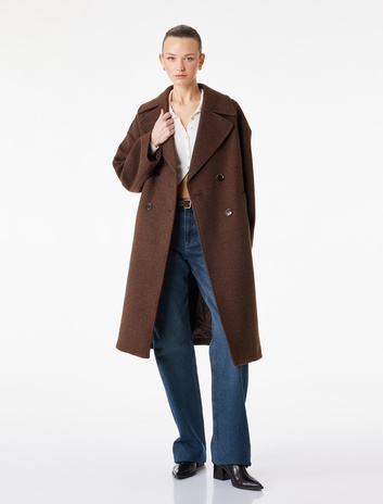 Uzun Kollu Düğmeli Cepli Kruvaze Oversize Kaşe Kaban