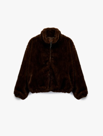 Koton X Sibil Çetinkaya - Suni Kürk Mont Uzun Kollu Dik Yaka Fermuarlı