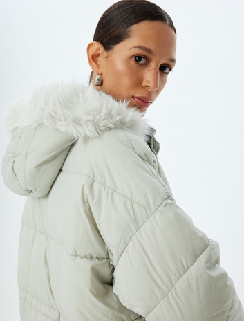 Oversize Kaban Kapüşonlu Yakası Suni Kürklü Su İtici Cepli Fermuarlı Sepete Ekle
