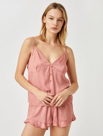 İnce Askılı V Yaka Düğmeli Saten Atlet Sepete Ekle