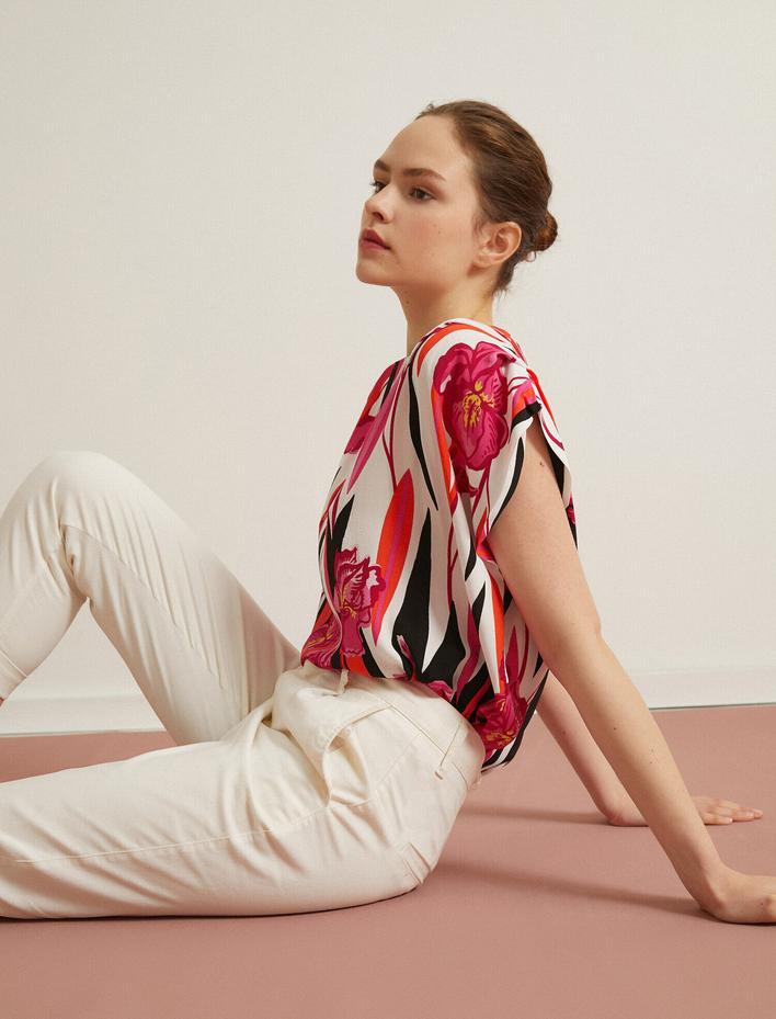 Desenli Bluz Kısa Kollu