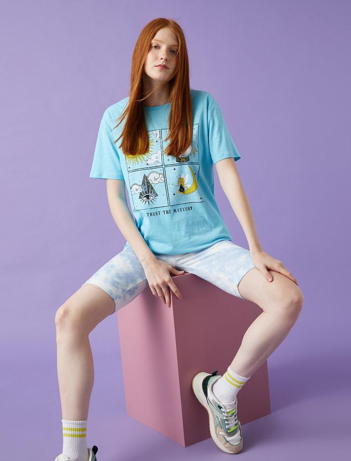 Baskılı Tişört Bisiklet Yaka Pamuklu Sepete Ekle