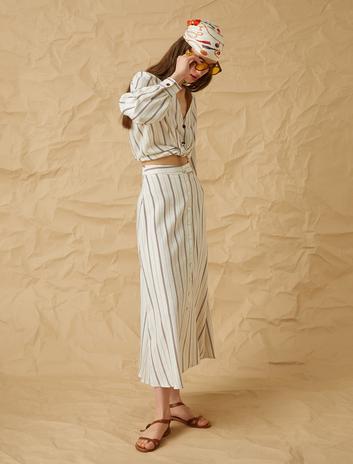 Düğmeli Midi Etek Keten Karışımlı Sepete Ekle