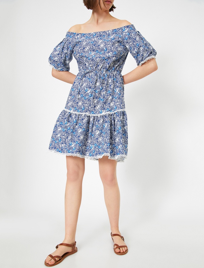 Çiçek Desenli Poplin Elbise