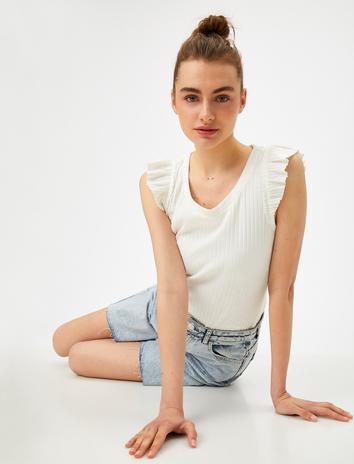Bisiklet Yaka Atlet Pileli Tanktop Sepete Ekle