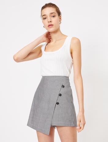 Düğme Detaylı Çizgili Şort Etek Sepete Ekle