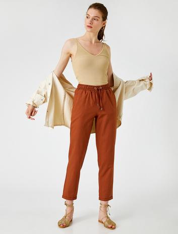 Keten Pantolon Belden Bağlamalı Sepete Ekle