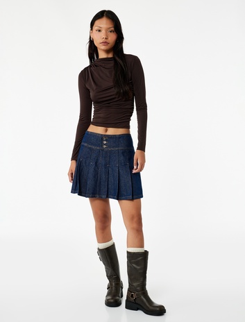 Drape Detaylı Dar Kesim Uzun Kollu Tişört Sepete Ekle