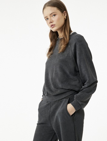 Uzun Kollu Bisiklet Yaka Yıkamalı Şardonlu Sweatshirt Sepete Ekle