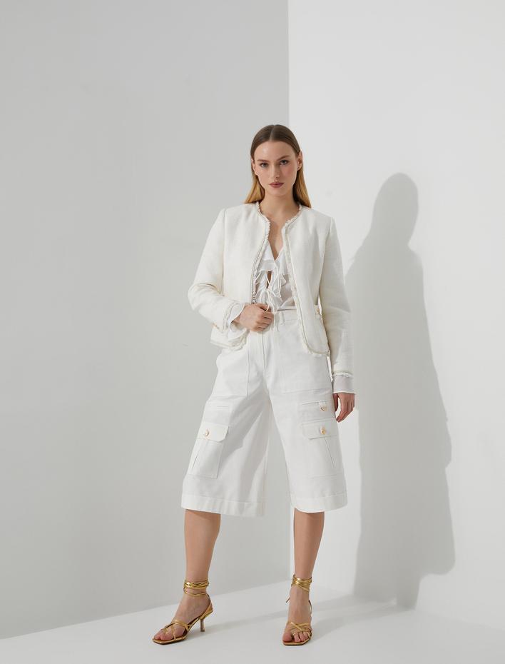 Kot Şort Bermuda Cep Detaylı Düğmeli Pamuklu