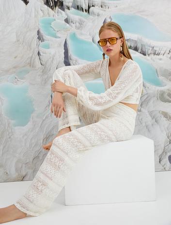 Koton X Şahika Ercümen - İspanyol Paça Dantelli Pantolon Sepete Ekle