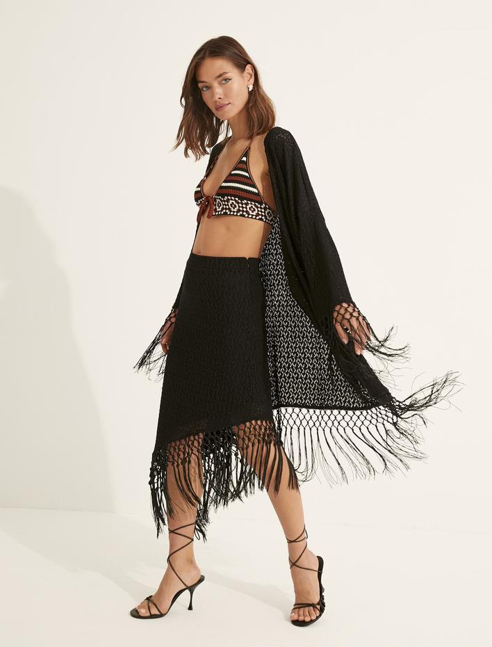 Melis Ağazat X Koton - Midi Boy Etek Püskül Detaylı Sepete Ekle