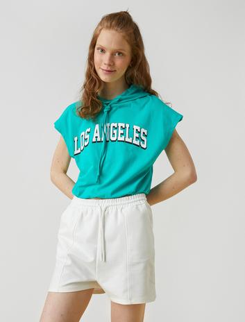 Crop Kolsuz Baskılı Kapşonlu Tişört