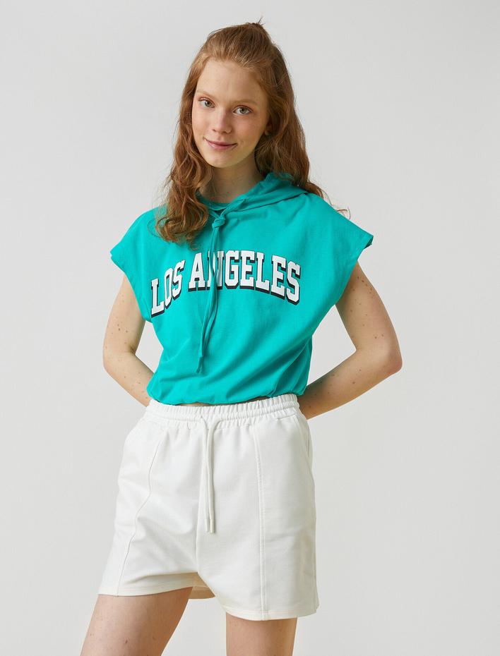 Crop Kolsuz Baskılı Kapşonlu Tişört Sepete Ekle