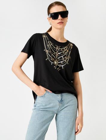 Mücevher Baskılı Tişört Modal Karışımlı Sepete Ekle