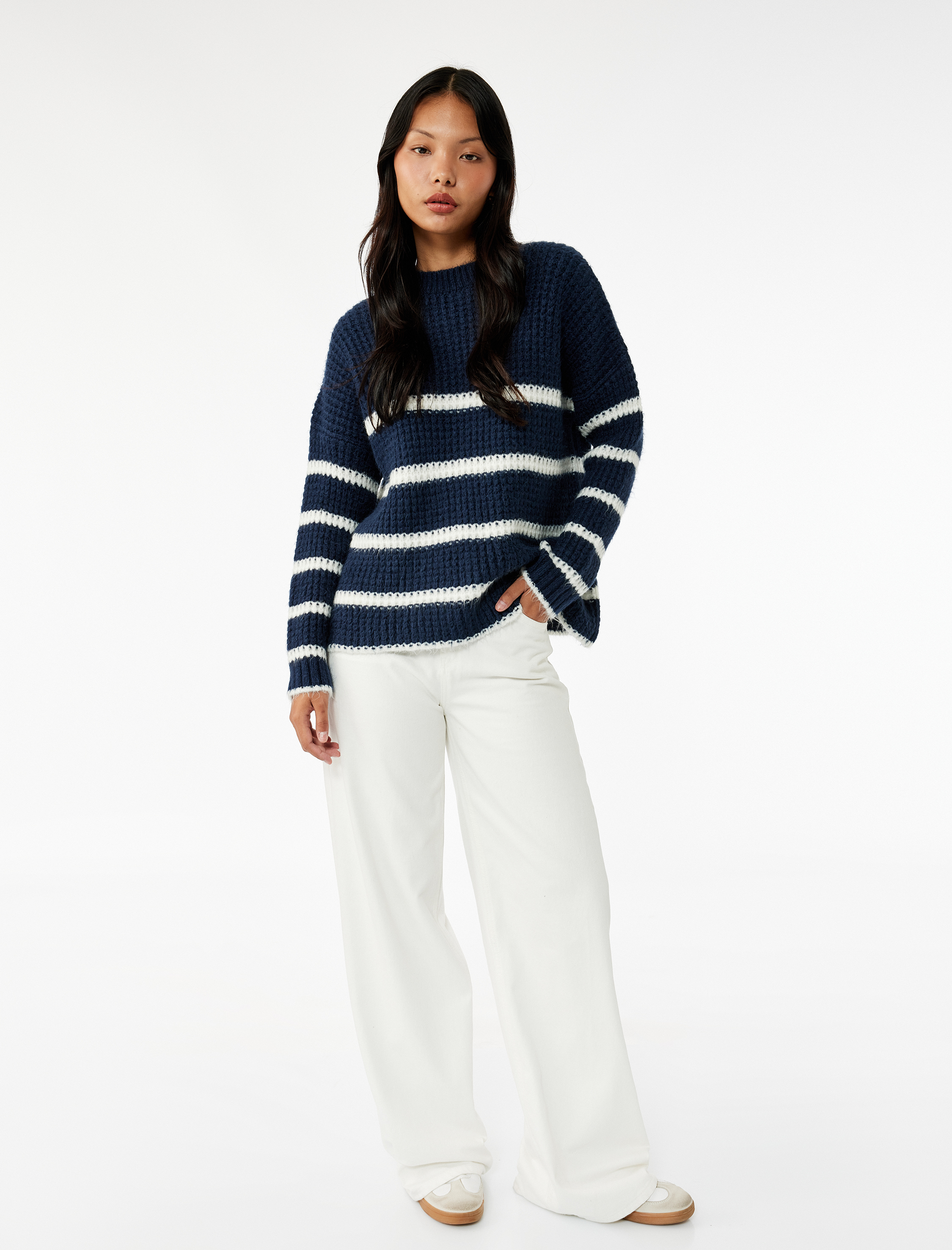 Şerit Desenli Bisiklet Yaka Uzun Kollu Triko Kazak
