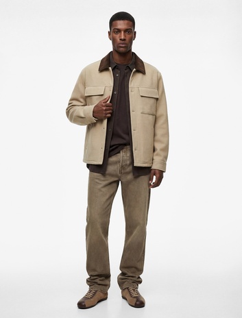 Gömlek Yaka Uzun Kollu Regular Fit Kaşe Bomber Ceket