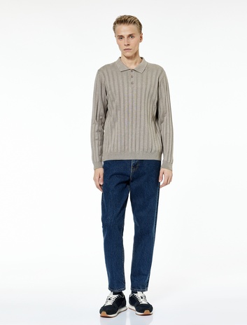 Uzun Kollu Düğmeli Polo Yaka Triko Kazak
