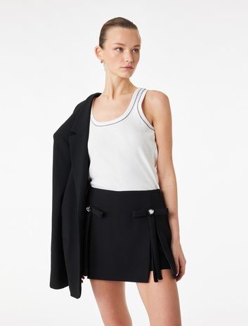 Kalpli Mücevher Düğme Detaylı Fiyonklu Şortlu Mini Etek Sepete Ekle