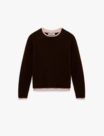 Koyun Yünü Karışımlı Uzun Kollu Bisiklet Yaka Biyeli Triko Kazak