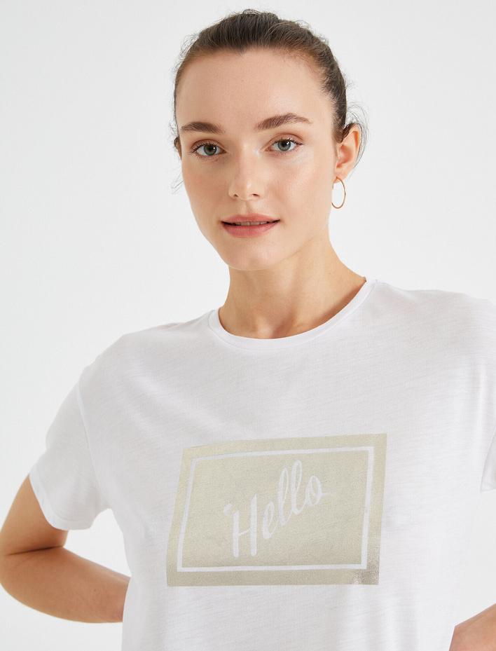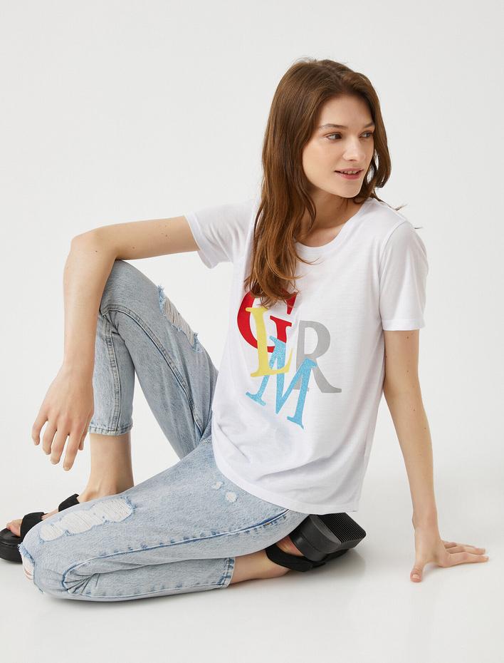 Slogan Baskılı Standart Kalıp Bisiklet Yaka Tişört