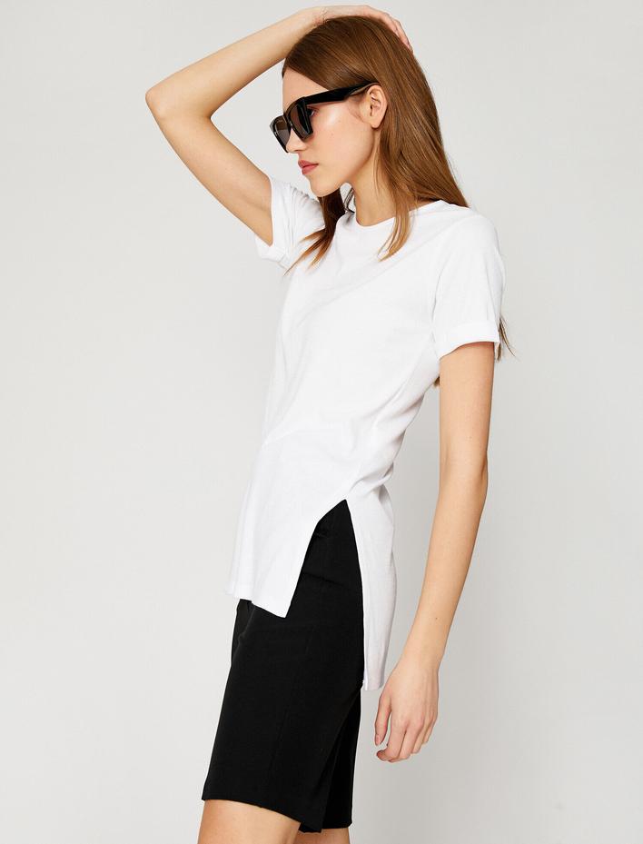 Yırtmaçlı Tişört Bisiklet Yaka Sepete Ekle