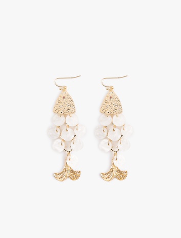Boncuk Detaylı Sallantılı Balık Küpe Sepete Ekle
