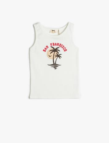 Kız Çocuk Atlet Kolsuz Baskılı Ribanalı Pamuk