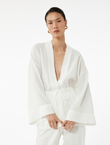 Mandarin Yaka Beli Bağcıklı 3/4 Geniş Kollu Kimono