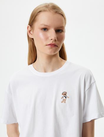 Kısa Kollu Tişört Bisiklet Yaka Nakışlı Pamuklu Sepete Ekle