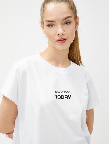Pamuklu Spor Tişört Slogan Baskılı Sepete Ekle