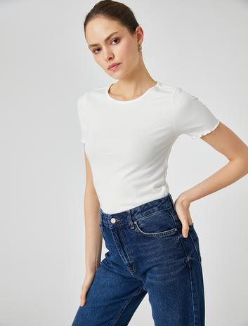 Bisiklet Yaka Tişört Kolları Fırfır Detaylı