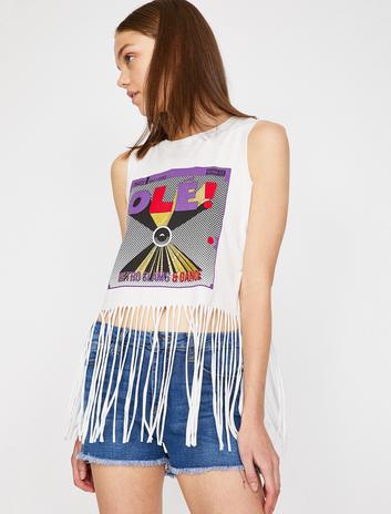 Crop Tişört V Yaka Kolsuz Bağlama Detaylı