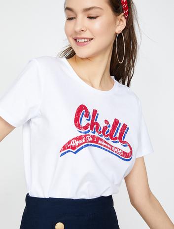 Bisiklet Yaka Kısa Kollu Baskılı Tişört Sepete Ekle